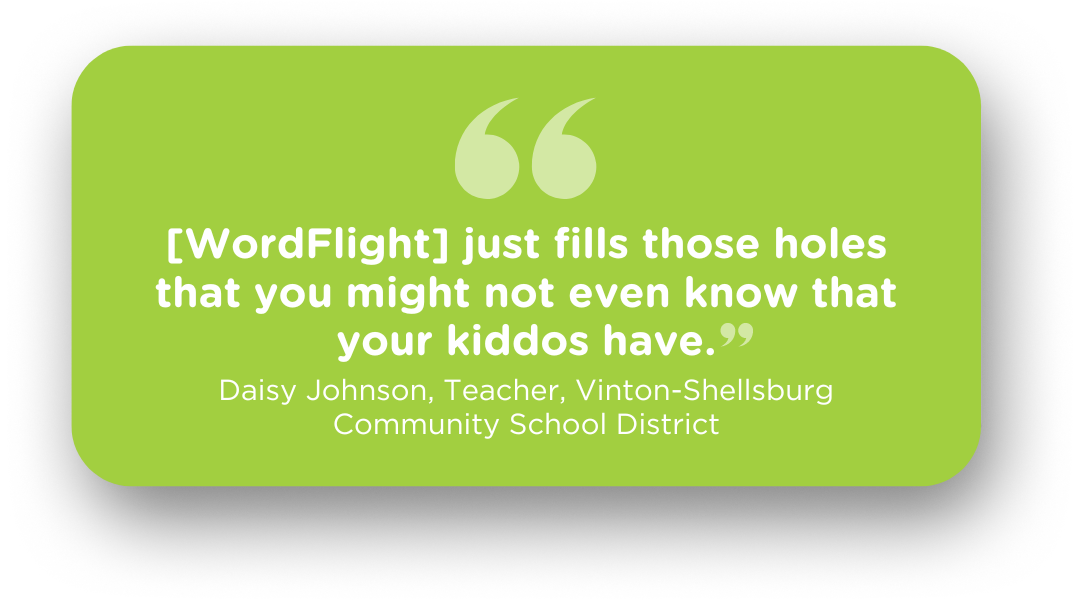 WordFlight is a research-based assessment and literacy intervention solution for grades 3-8 that blends the best of the Science of Reading and the Science of Learning to develop fluent readers. The WordFlight Screener is the first step of the program.